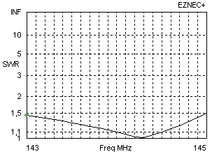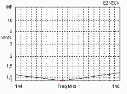 One of the best yagi designs for 2m I know is the 12-El.-28-Ohm-Yagi. Please look for the extrem clear pattern (no big backlobe and good sidelobes), gain 14,28dBd, bandwidth for SWR < 1,5 is 2 MHz! You will not find any comparable yagi with the same boomlength, gain, pattern and bandwidth. It is impossible to match the antenna with the described match-element for a 50Ohm-direct feed. This is the reason why a lot of contest groups, EME-amateurs and severe DXers use homemade DK7ZB-yagis. |