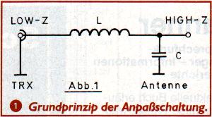 Die „Schaltung“ (bei zwei wirksamen Bauteilen kann man kaum davon sprechen) stellt eine klassische Art der Antennenanpassung dar, die meist für Einbandlösungen beschrieben wird. Verwendet man einen Drehkondensator und eine variable Induktivität, können Langdrähte nahezu beliebiger Abmessungen betrieben werden. Das Schaltungsprinzip sieht man in Abb. 1. So einfach die Schaltung ist, einige Grundüberlegungen zum Einsatz sind zum Verständnis notwendig, um in der Praxis Mißerfolge auszuschließen. |