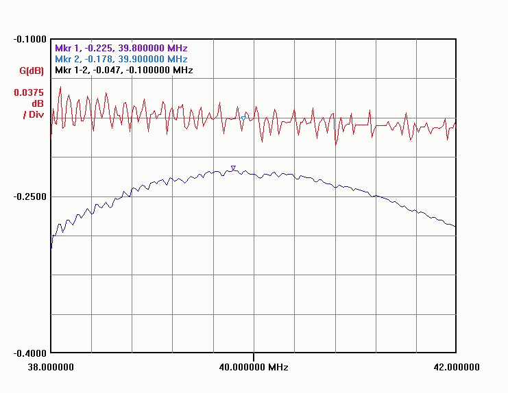 Upper graph: A piece of 50-Ω-coax with the length of lambda/2 Lower graph: Two matching sections parallel back to back The difference is -0,025 dB. Do you think we should talk about that? If you use better cables the difference will be less. If you construct a 50-Ω-choke for feeding a 50-Ω-Yagi or a choke with 2x75-Ω- or 2x50-Ω-cables in parallel makes no difference in the losses! |