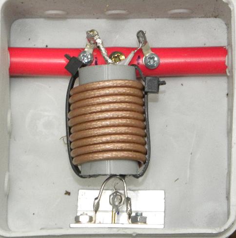Another type of an impedance choke for 2m: 2x RG179 PTFE-cable parallel wound to a choke. The length is 2x 37 cm (braid). This choke can be loaded with 500 Wtts SSB/CW power |